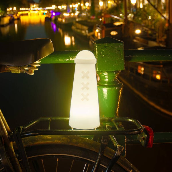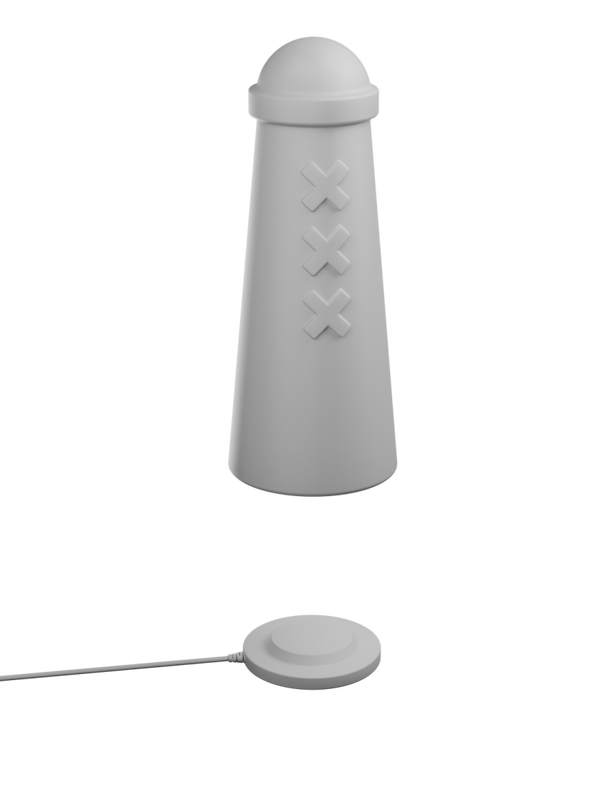 Het iconische Amsterdammertje als compacte, draadloze sfeerlamp. Zet ’m neer waar je wilt: aan tafel, op je vensterbank of mee naar het terras. Laad ’m thuis via inductie en geniet daarna urenlang van een warme, diffuse gloed – binnen én buiten.
