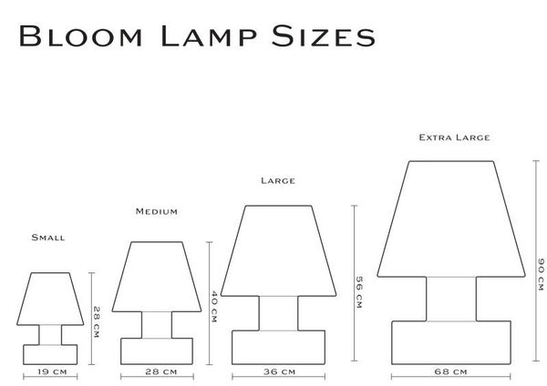 De enige echt Original Bloom portable lamp. Deze lamp is letterlijk overal te gebruiken. Makkelijk te dragen door een ingebouwd handvat aan de bovenzijde van de lamp. De lamp is verkrijgbaar is 4 maten: 28, 40, 56 en een extra grote 90 cm versie!!. Zeer stabiel ook in winderige omstandigheden. Moderne Li-ion batterij technologie verwerkt in een verwisselbare battery-pack die eenvoudig kan worden opgeladen met bijgeleverde lader.